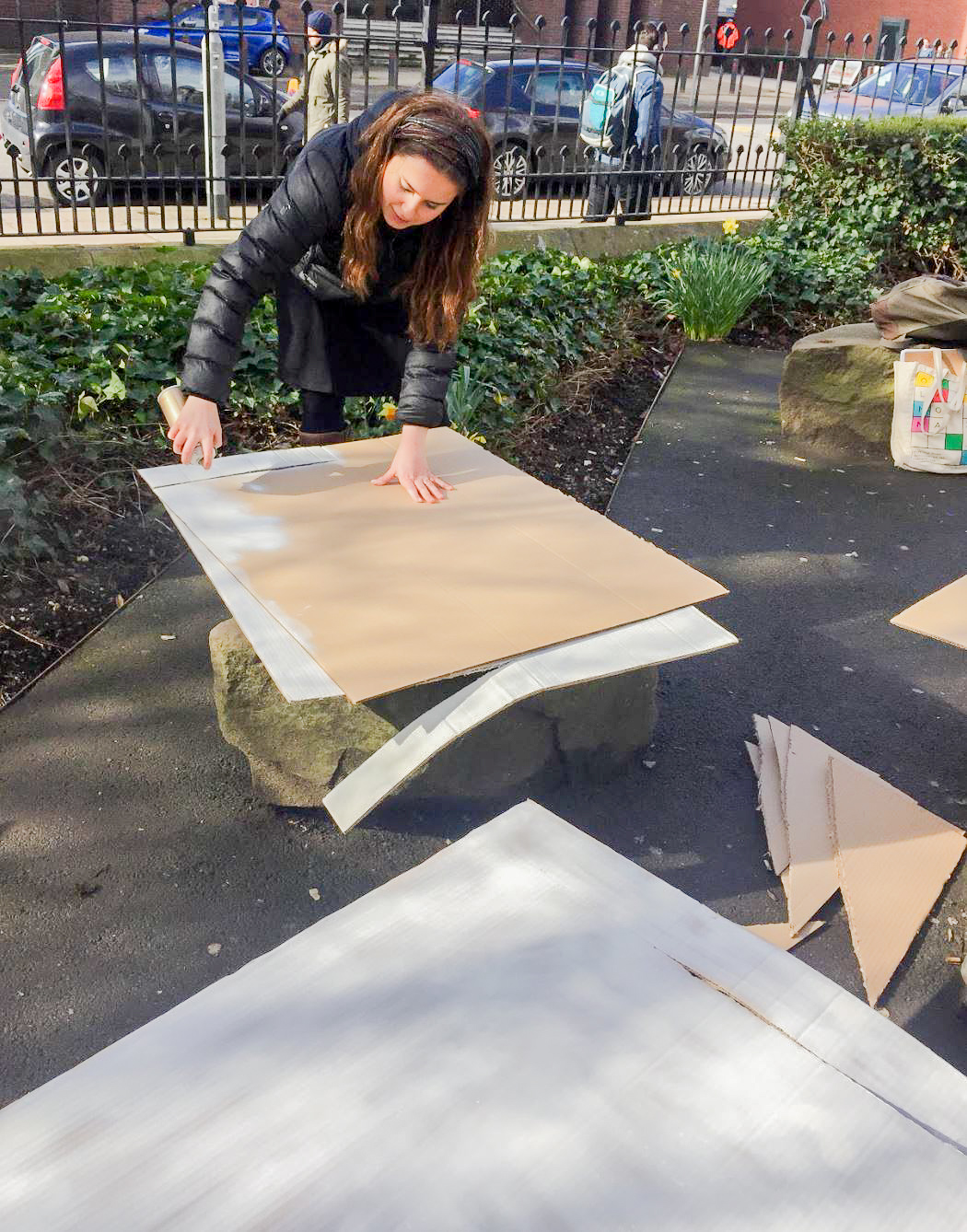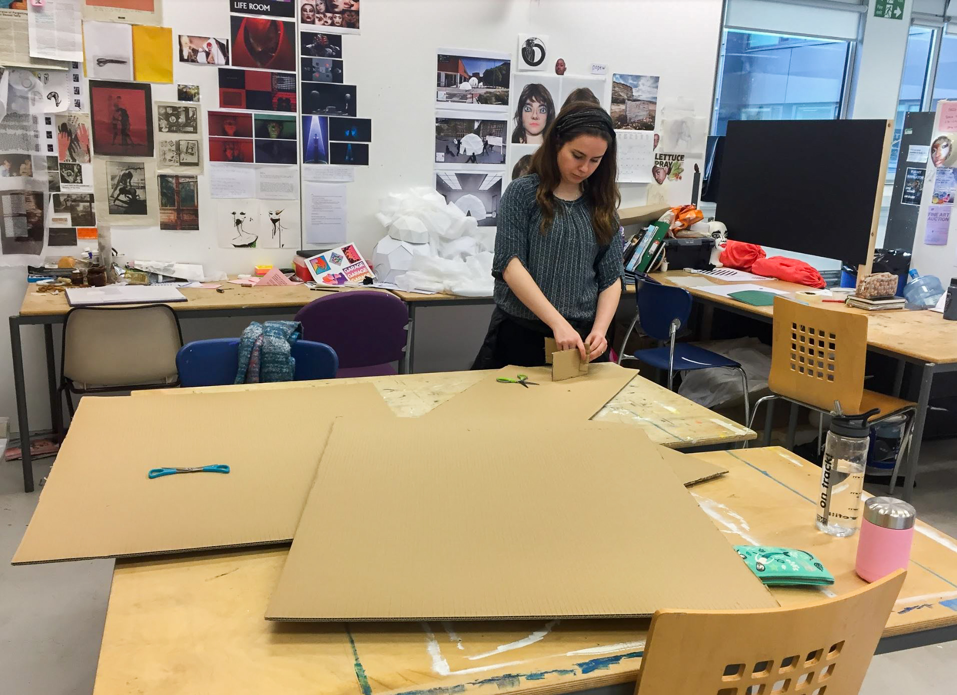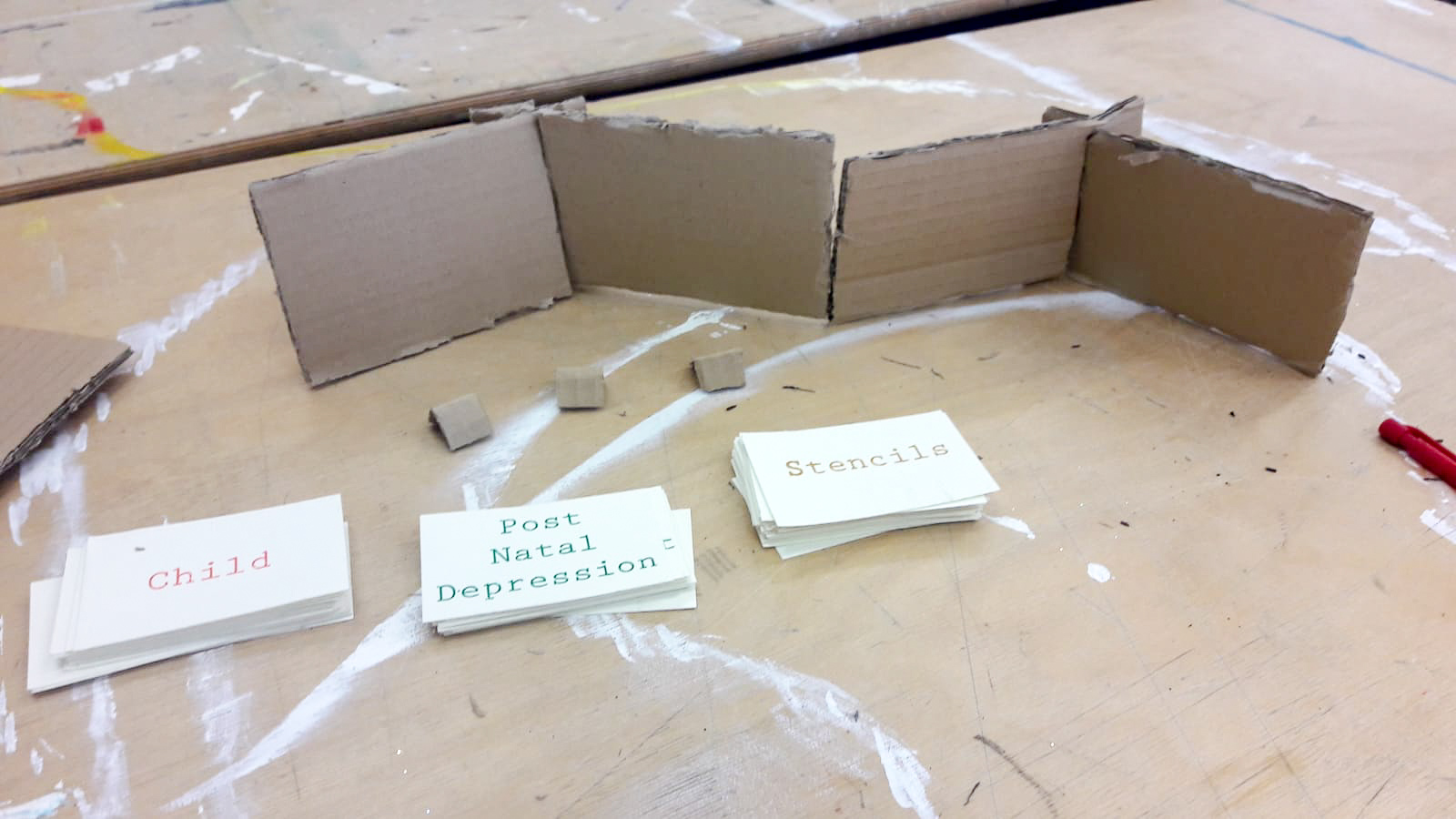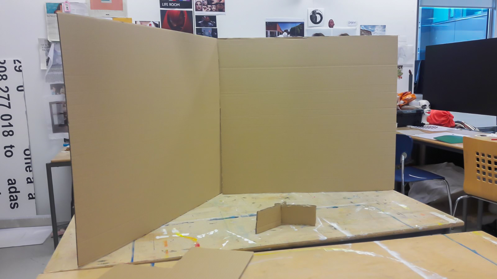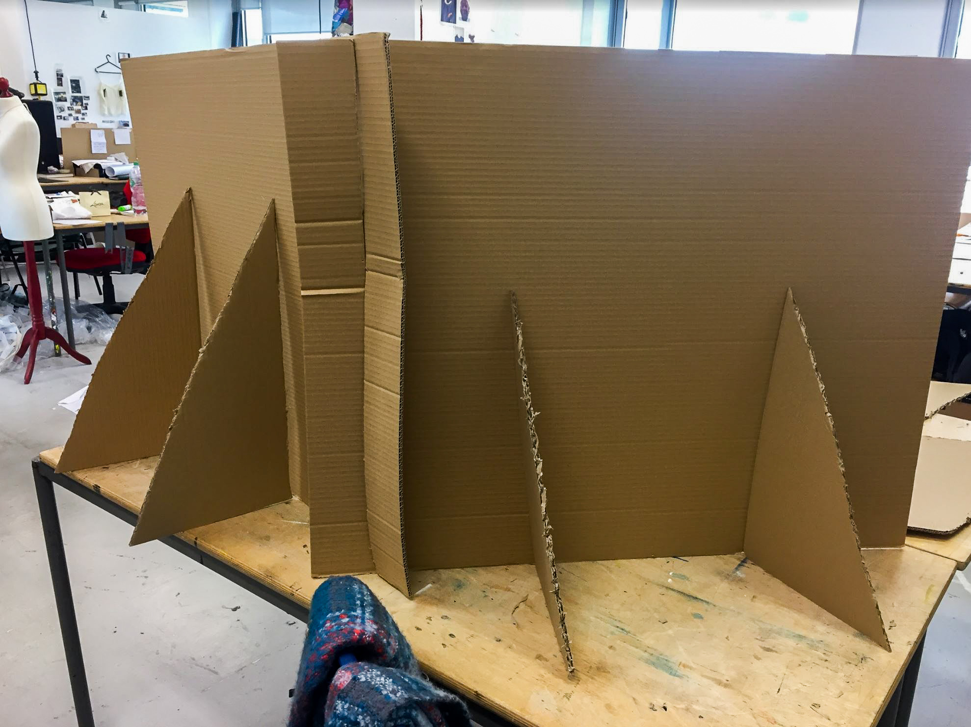We wanted to try out this model on a large scale. Best and cheapest material to work with is cardboard. We needed to think logistically about the structural layout to make sure that the display doesn’t fall over at the event- that would be so unprofessional.