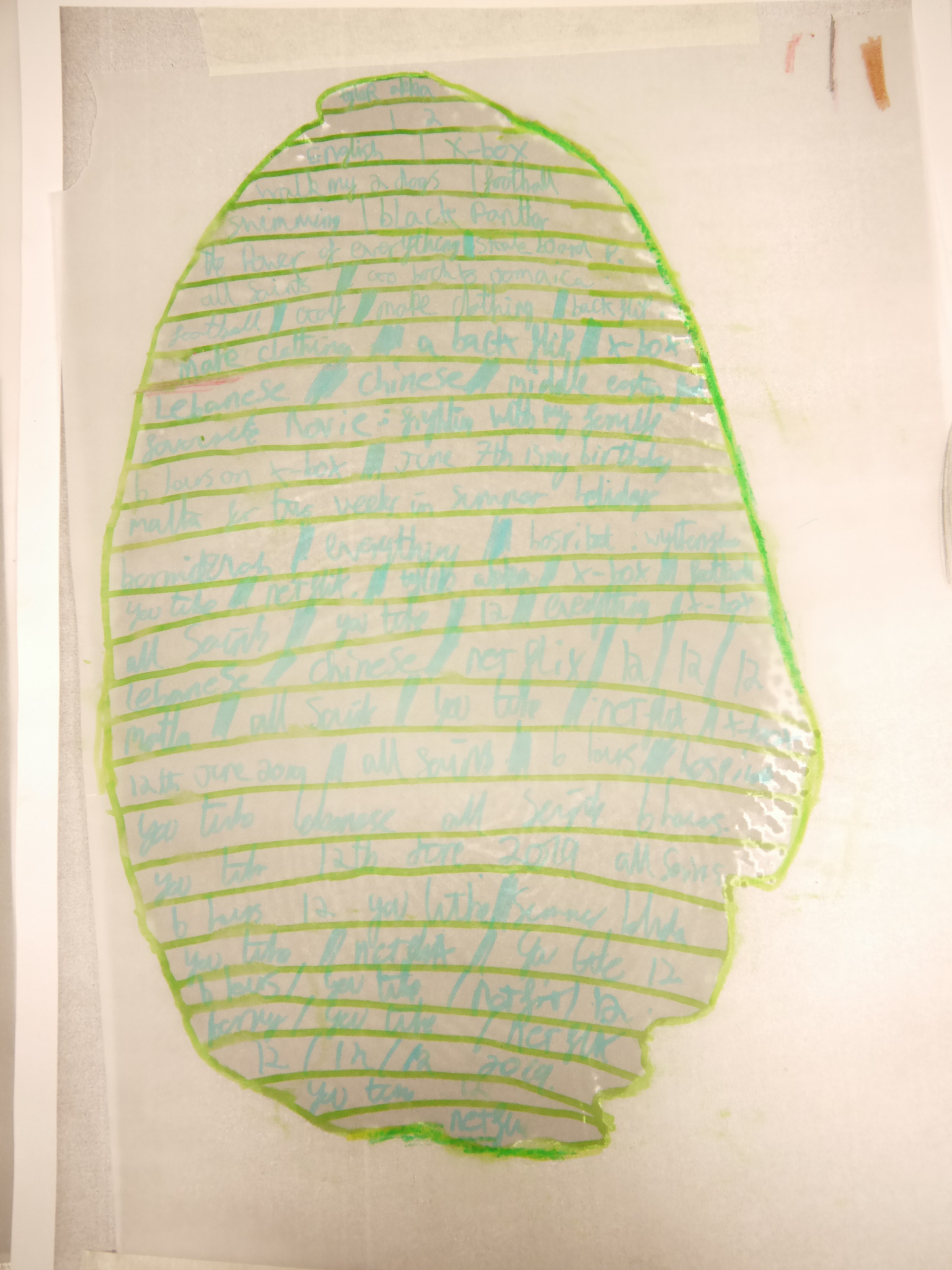 Then using tracing paper to write over the lines and answering different questions about myself.