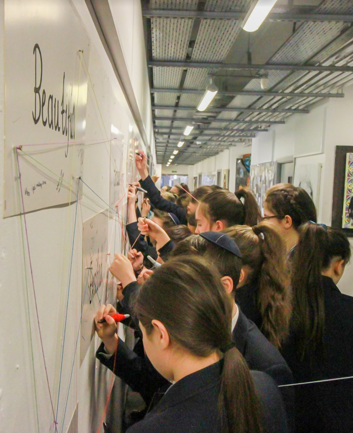 I went in the day before on Sunday 14th, to paint the display boards white within the hall way that the head of art department at King David High school assigned for the display. I made sure I had adaptable lesson plans as each outcome would depend on: what space was assigned, what materials were available, the age group and number or participants taking part.