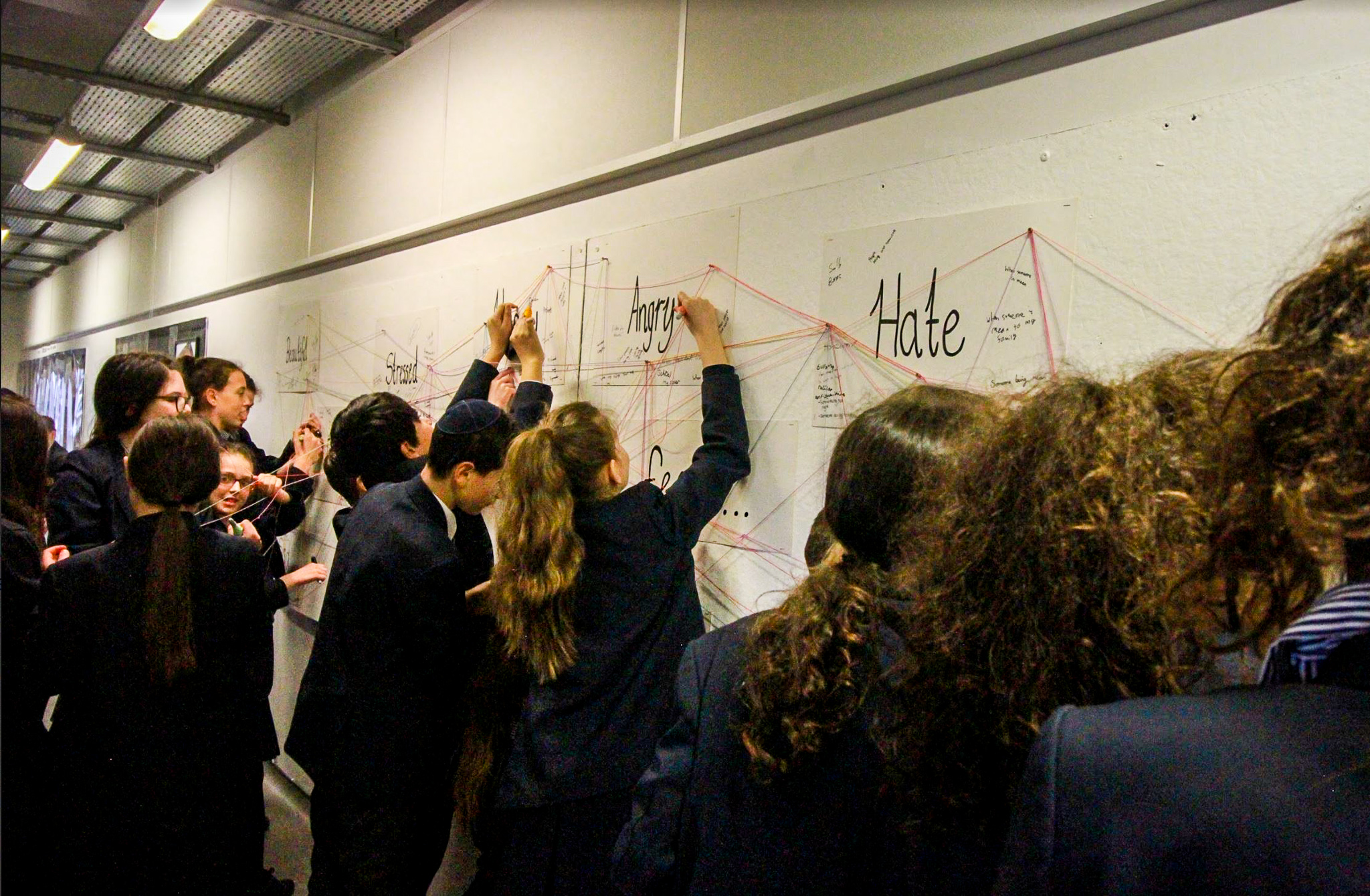 Delivering an Interactive and creative way for the students to answer questions about their emotions, building a complex web, visually making connections between themselves, scenarios and other peoples answers. This can create an exchange of answers and allow peers to give each other advice and support based on different emotions. Building a bridge of commonalities and helping peers to relate to one another.