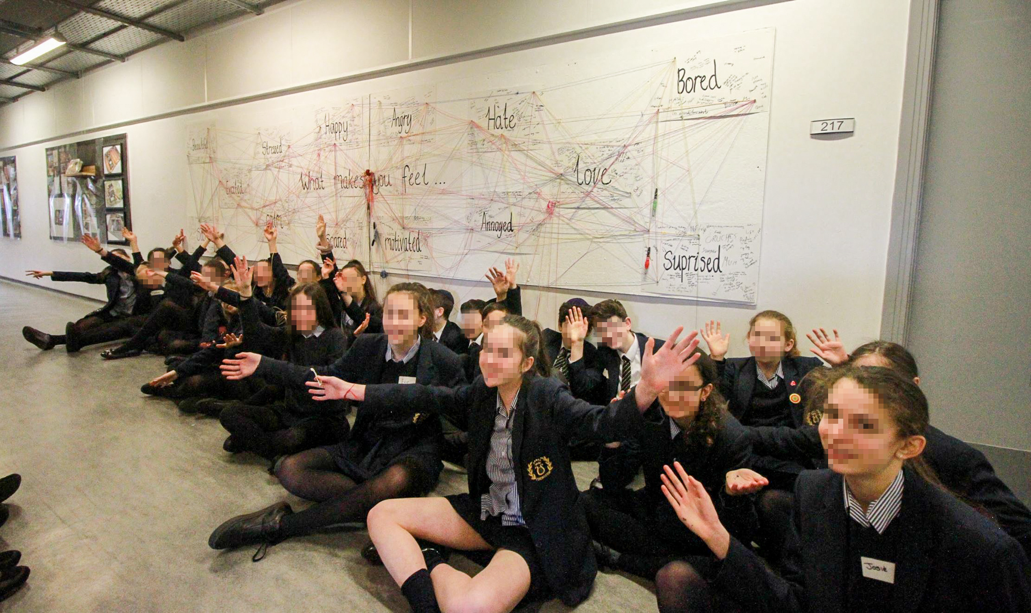 I then brought everyone out into the hall way to sit on the floor in front of the workshop activity – this would help them understand and visualise the activity as I demonstrated what to do.