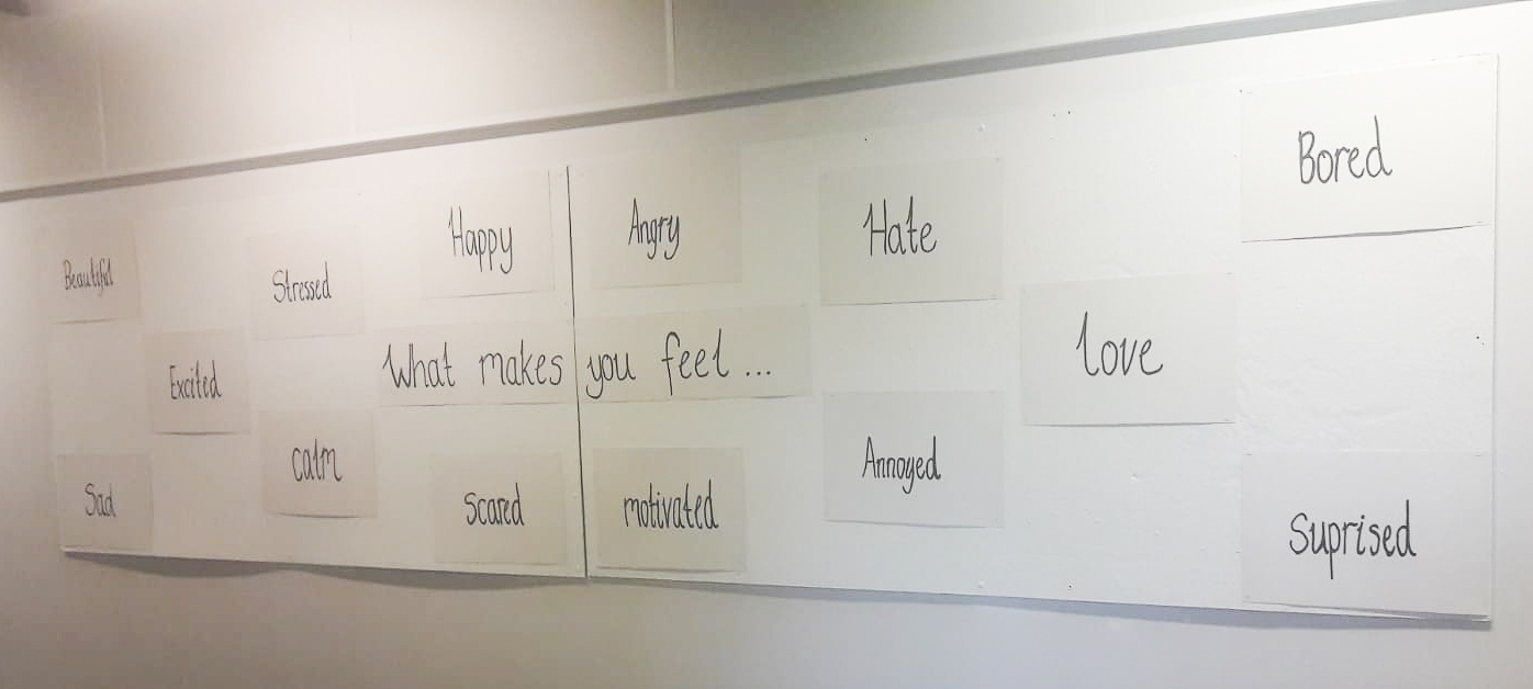 I wrote different emotions down on large pieces of card to spread out around the display.