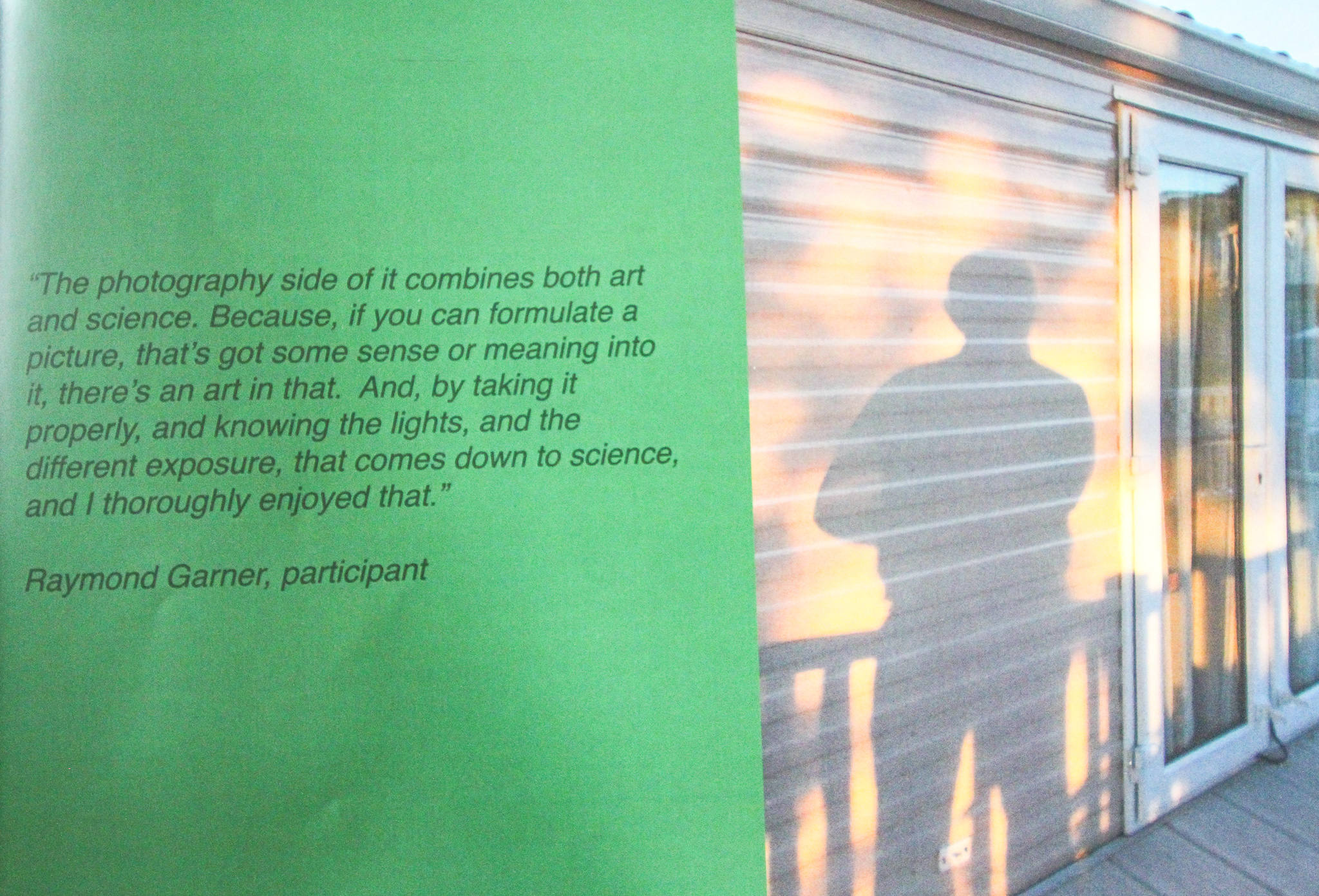 The group also had a photography workshop with one of the artists. As seen below, one of the photographs taken by Raymond Garner, one of the participants who wanted to capture his shadow as a way to tell his stroke story through science and art. Using photography as a technique of communicating, and expressing a story spoke a lot to some of the participants that I met as it brought them a certain ‘realness’ of their own lives, capturing their everyday moments.
