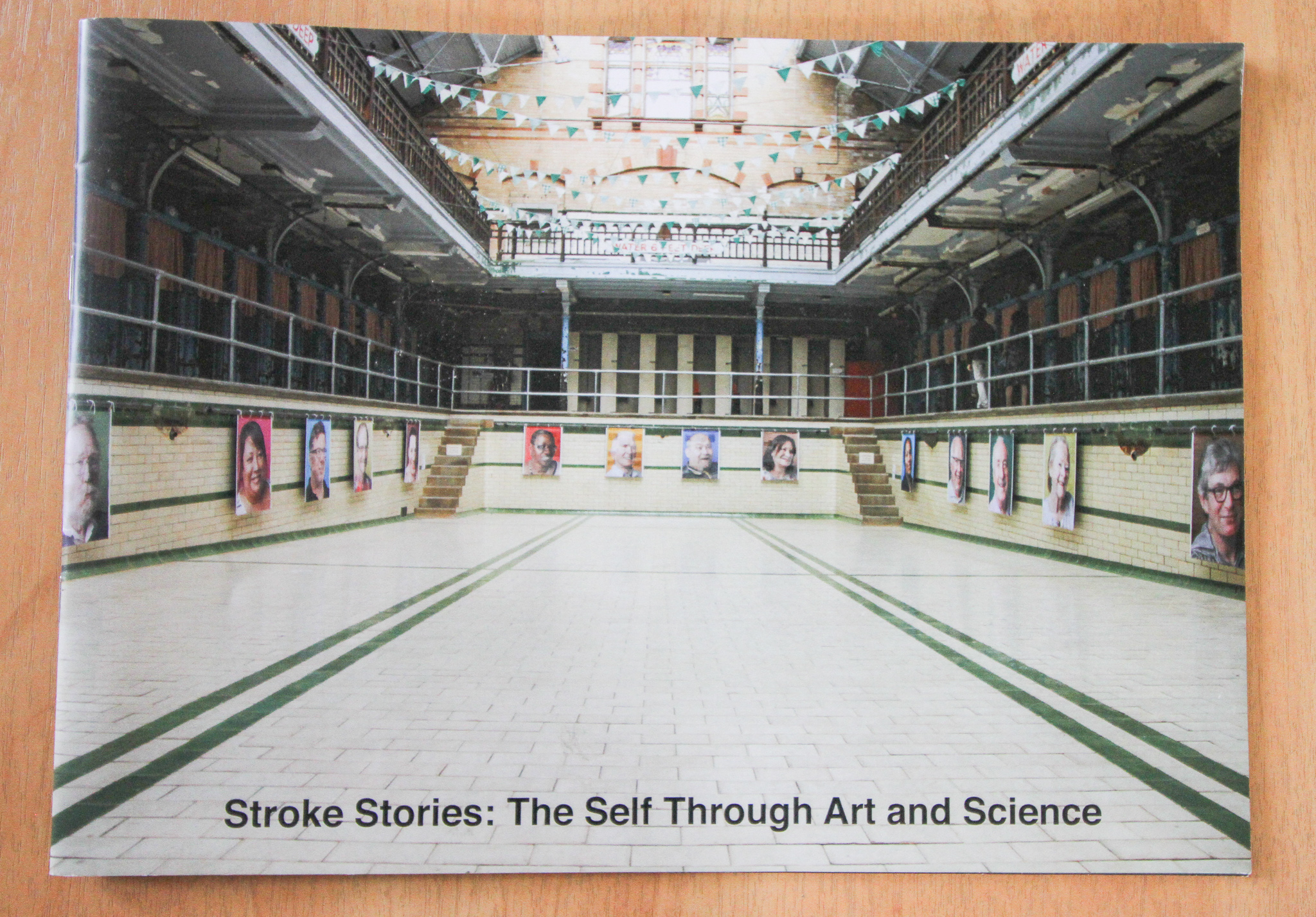 The project Stroke stories: The self through art and science was displayed in Victoria baths. Around the exhibition there was photographed portraits of each participant who took part in the project. The photographs were interactively displayed so the audience could look behind the images to see the artwork created by each individual.