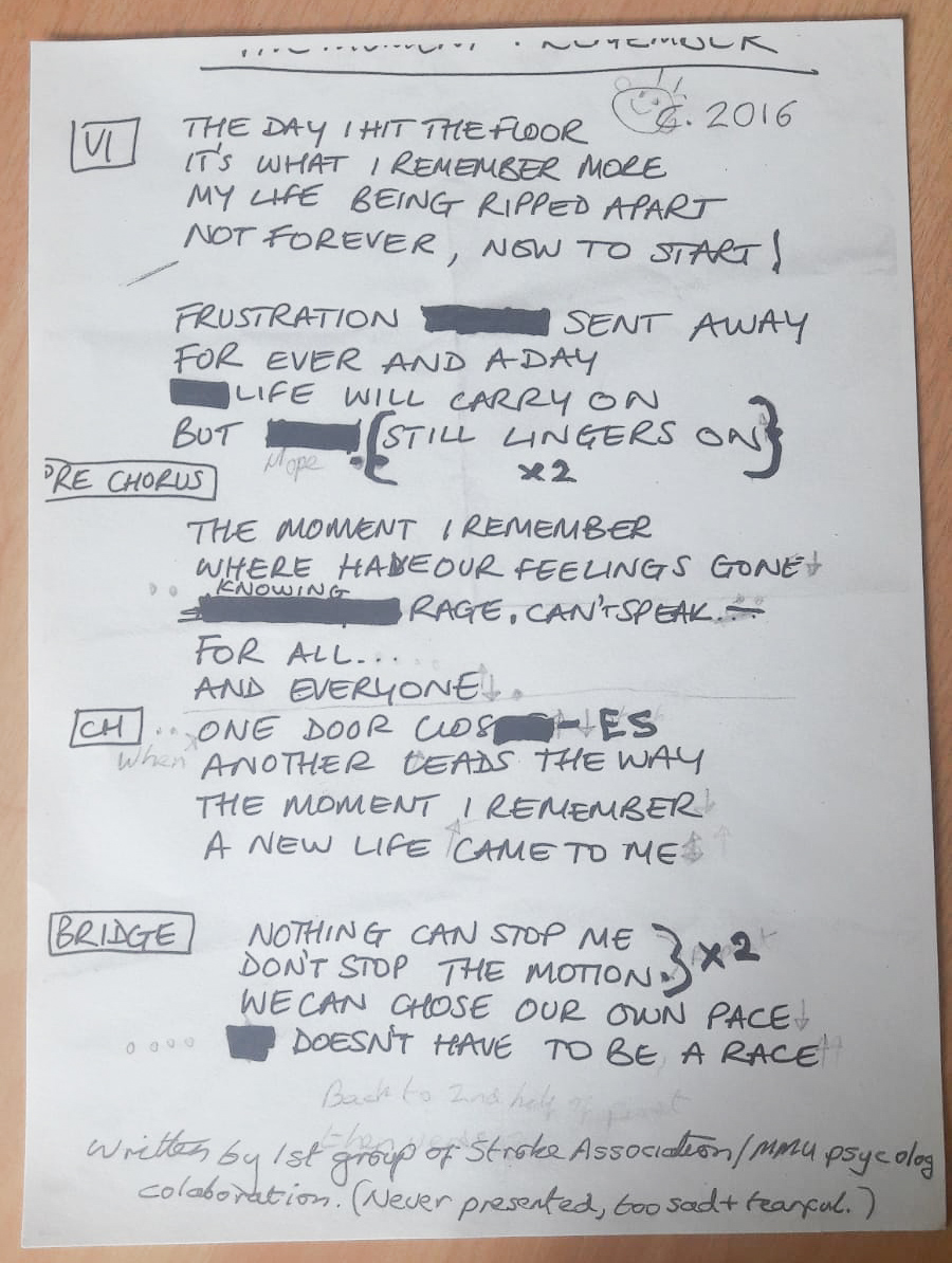 The group worked with brighter sounds, and together wrote a song with an underlying message about how they felt as a stroke survivor which they preformed in Manchester.