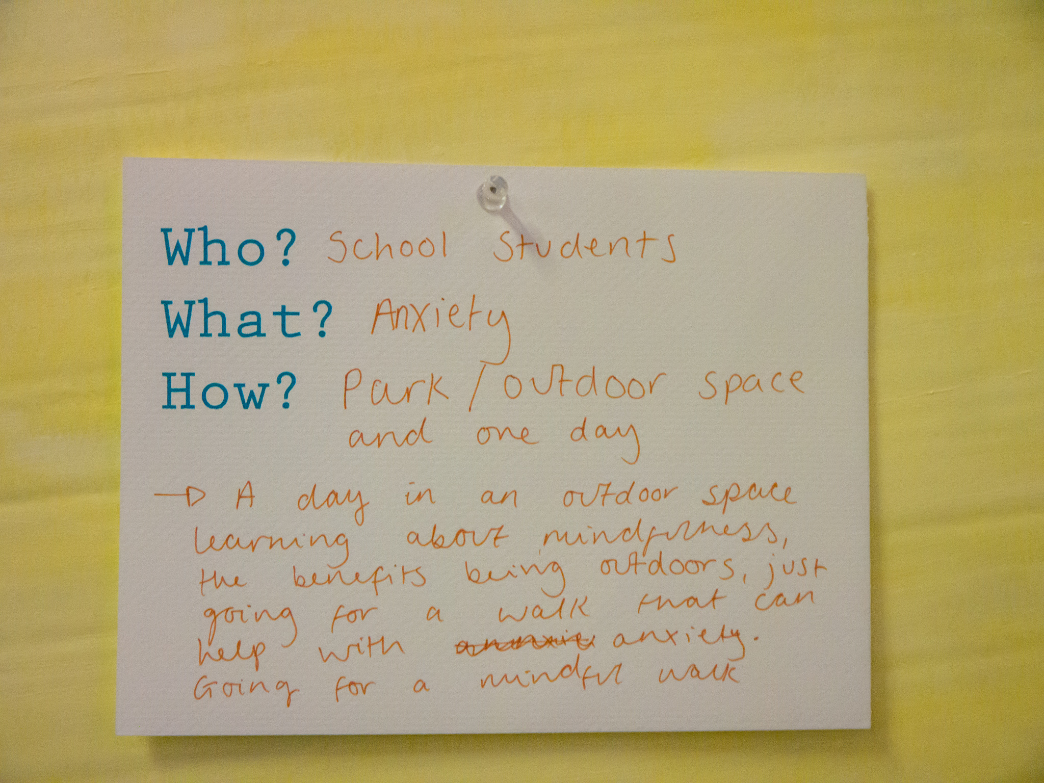 Origami? Simpler to do, slowing down, perhaps more suitable for Mahdlo, or younger children, as more about the process rather than the end product. Make origami info, personal reminder creations. Like you unfold the part that says ‘anxiety’ and underneath it has some tips for you to read. A small useful token to have or to give to somebody to help you in a time of need. More calming/writing workshop. Great idea for mahdlo